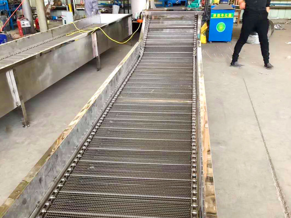 輸送機輸送能力大,運距長,還可在輸送過程中同時完成若干工藝操作,所以應用十分廣泛。網鏈輸送機用于物料的輸送。采用不銹鋼網帶作為載體,適用于各種食品行業的烘干、去濕、冷凍等、熱處理等;不銹鋼制成,具有耐高溫、便于清洗等特點。