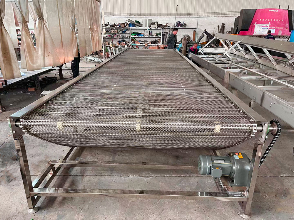 輸送機輸送能力大,運距長,還可在輸送過程中同時完成若干工藝操作,所以應用十分廣泛。網鏈輸送機用于物料的輸送。采用不銹鋼網帶作為載體,適用于各種食品行業的烘干、去濕、冷凍等、熱處理等;不銹鋼制成,具有耐高溫、便于清洗等特點。